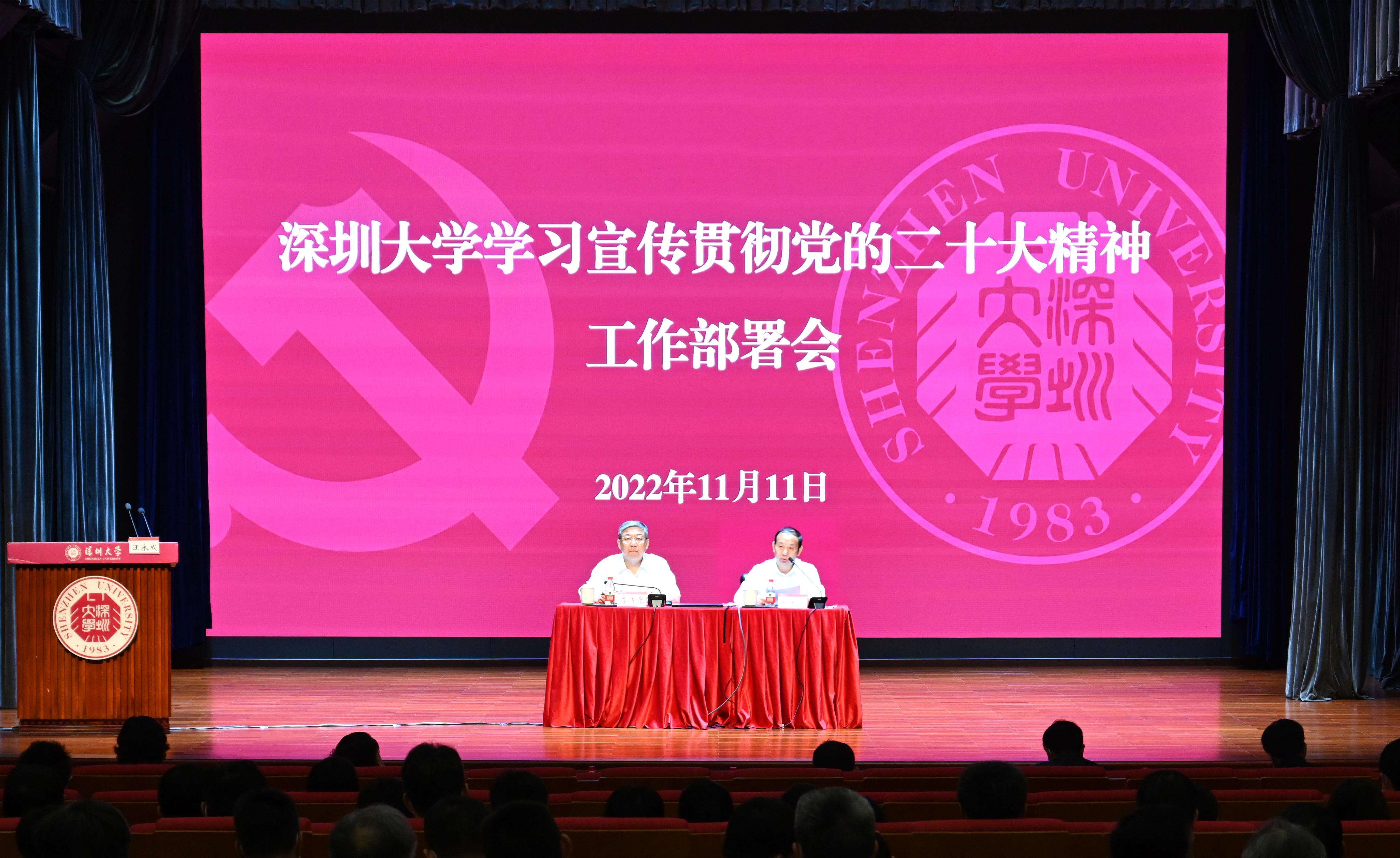 為更好地傳達黨的二十大精神,對全校學習宣傳貫徹黨的二十大精神相關工作作出具體部署,11月11日上午,深圳大學在粵海校區國際會議廳召開學習宣傳貫徹黨的二十大精神工作部署會。黨委書記李清泉就深入學習宣傳貫徹黨的二十大精神做部署動員,校長毛軍發主持會議并傳達黨的二十大精神以及中央、省委、市委、教育系統有關會議精神。校領導、全體中層干部以及各學院(部)黨務工作者、黨員代表參加會議。