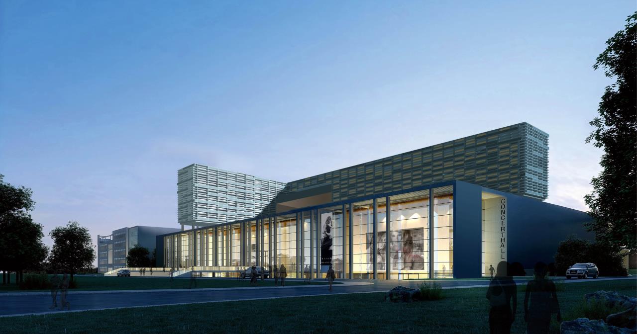 據介紹,深圳大學藝術綜合樓項目位于深圳大學粵海校區內,沿深南大道而建,由深圳市政府投資、深圳大學建筑設計研究院有限公司設計、中建二局二公司承建。項目主要建設內容包括藝術樓、外語樓及建規學院擴建樓,三座單體建筑的總建筑面積近13萬平方米,是迄今為止深圳大學粵海校區功能最齊全、標準最高、地下停車空間最大的建設項目。其中,藝術樓地下4層、地上8層;外語樓地下3層、地上14層;建筑與城市規劃學院擴建樓地下1層、地上5層。各單體建筑均采用鋼筋混凝土框架剪力墻結構型式,藝術樓在功能設置上,有會議廳、大劇場、小劇場、實驗劇場、音樂廳、琴房、藝術工作室等。項目建成后不僅能有效增加深圳大學辦學空間,擴大音樂、美術、舞蹈等藝術教學、研究的使用空間,更將成為深圳市市民文化演出、藝術欣賞的高水平場所。