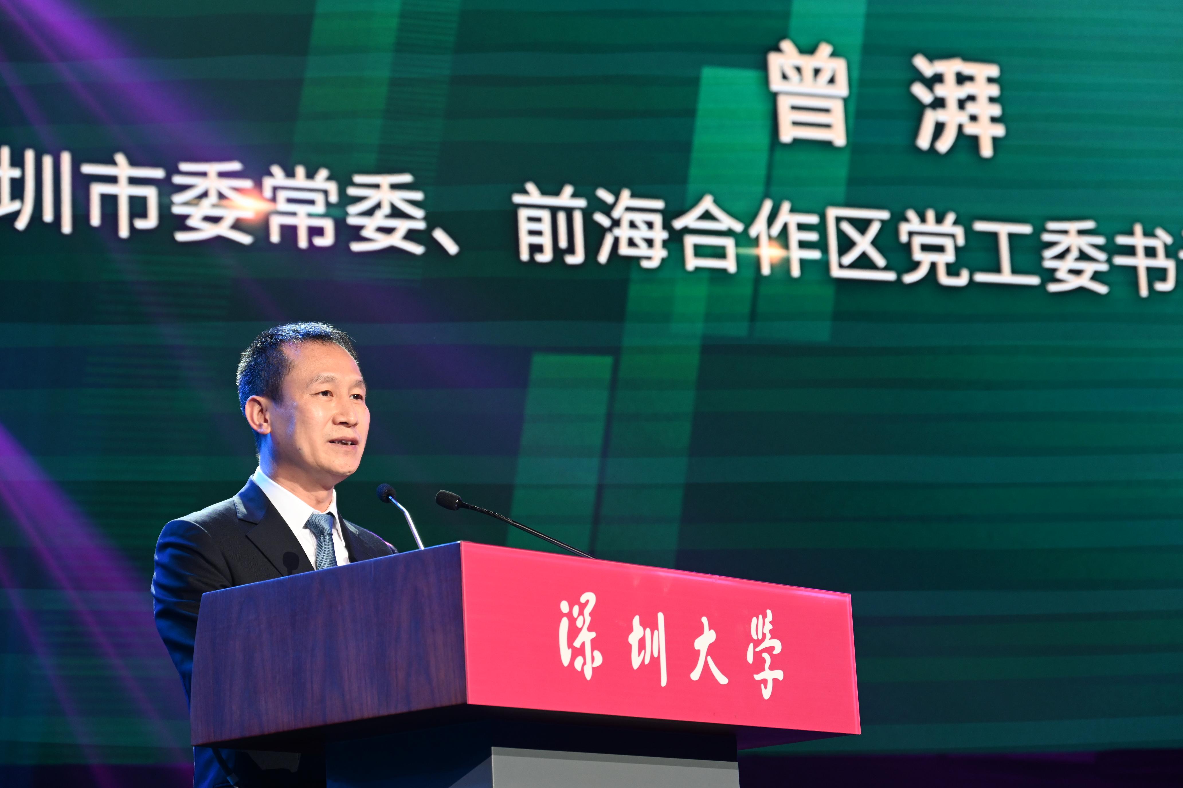 在儀式的致辭中,曾湃首先代表深圳市委市政府向深圳大學建校40周年致以熱烈的祝賀,向深圳大學全體師生員工致以誠摯的問候,向熱心支持深圳大學和深圳高等教育事業發展的各界人士致以衷心的感謝。