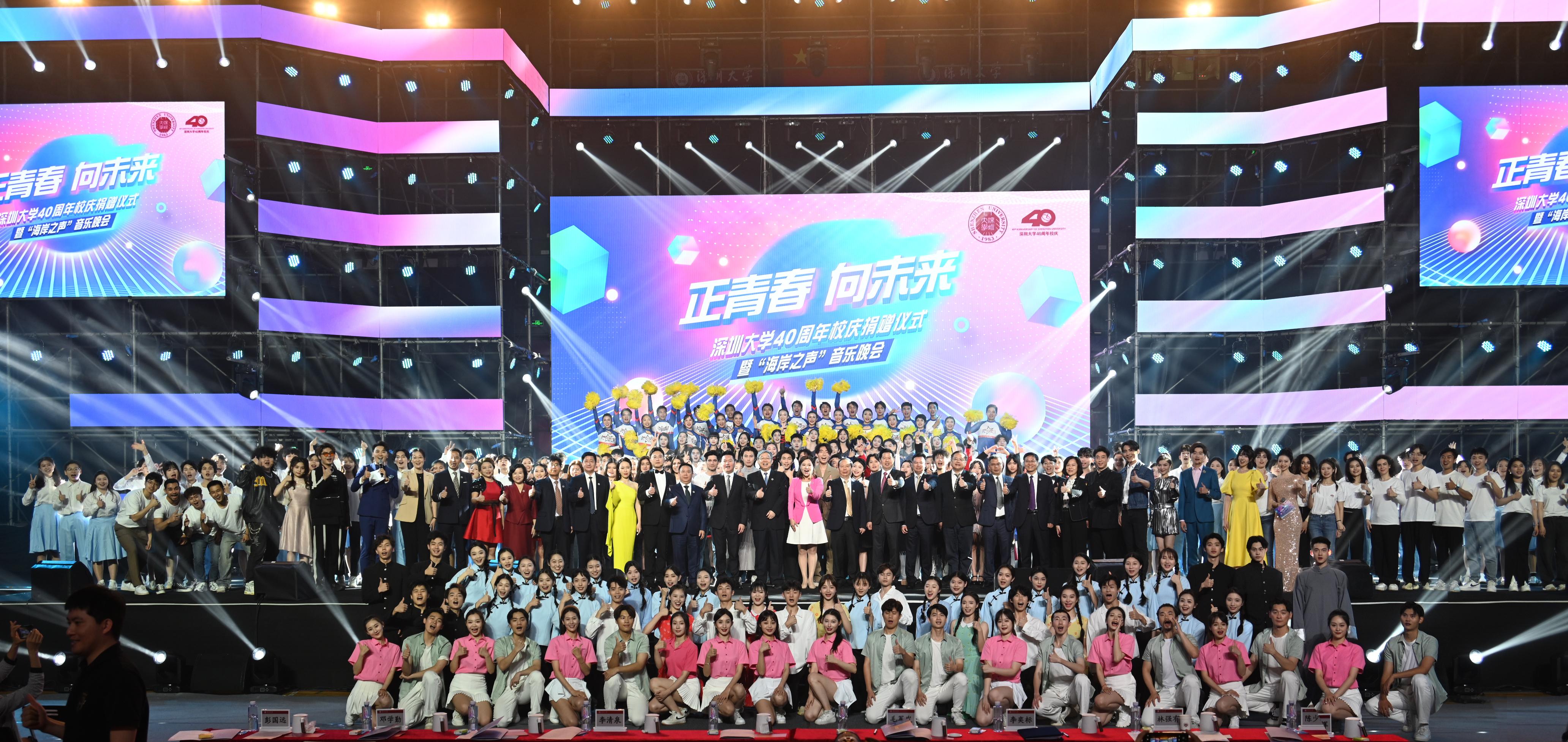 正青春,向未來。4月27日晚上,深圳大學40周年校慶捐贈儀式暨“海岸之聲”音樂晚會在深圳大學麗湖校區至暢體育館隆重舉行。