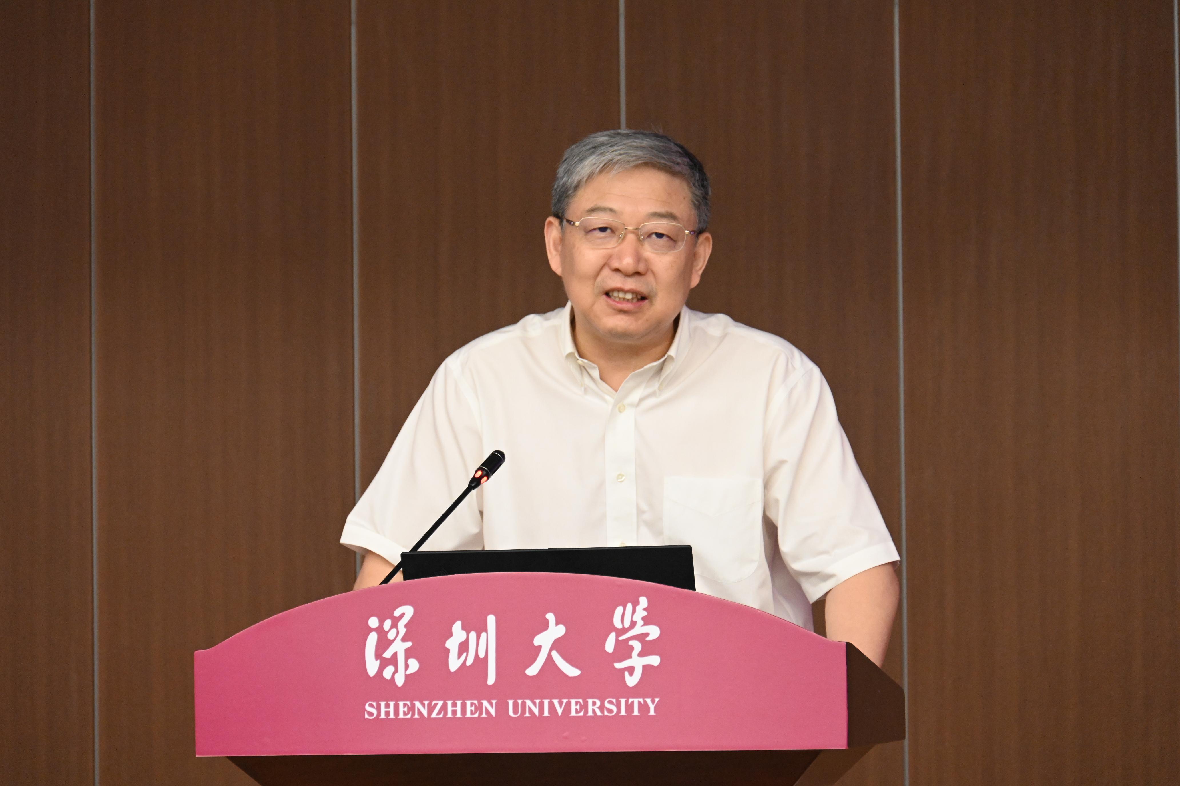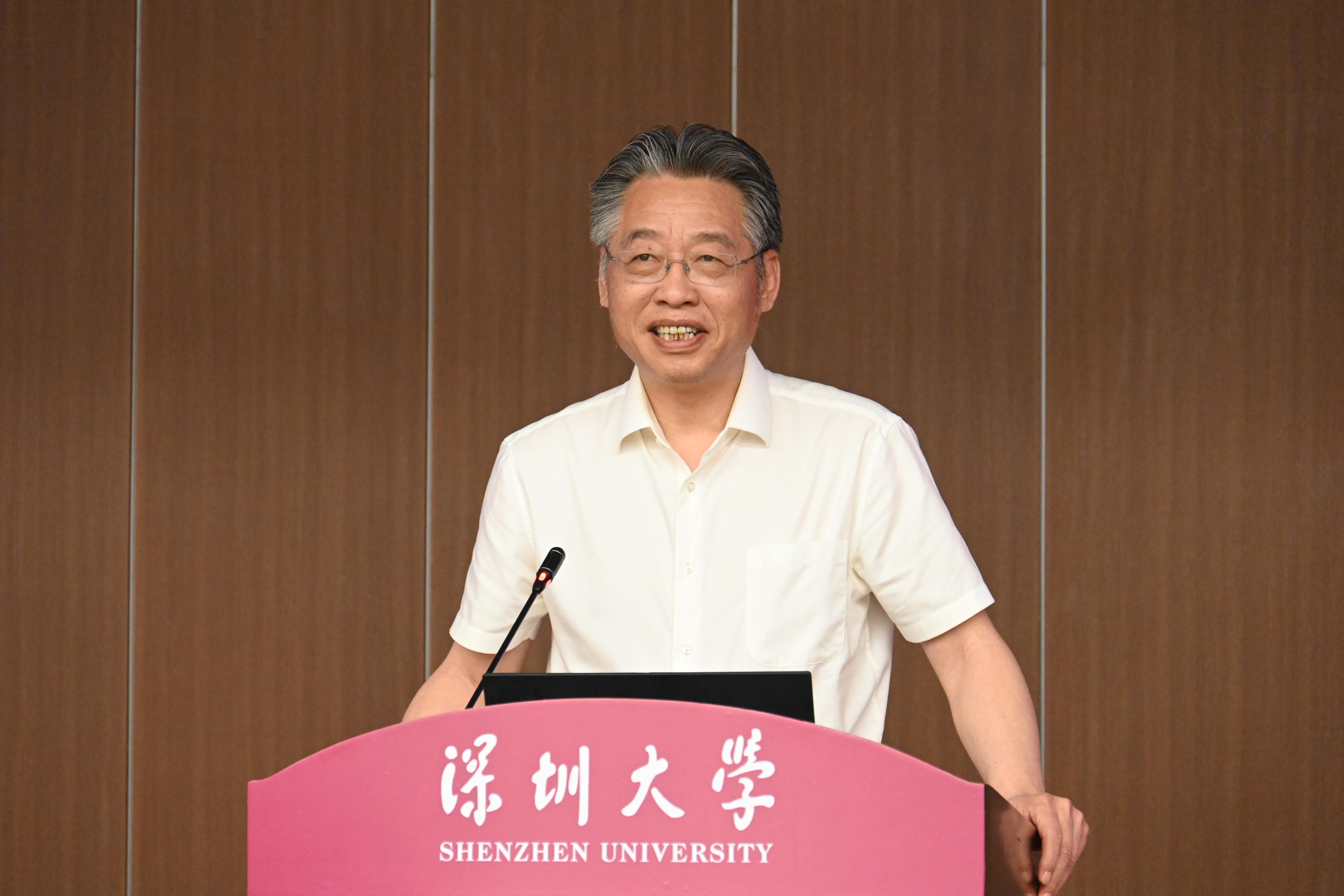 李清泉在致辭中回顧了自己作為大學(xué)管理者參與圖書館建設(shè)的體會,他認為圖書館是一個集中體現(xiàn)大學(xué)精神與文化的地方,一直是學(xué)校的重要部門和重點建設(shè)單位。深圳大學(xué)在建校之初,就將圖書館的建設(shè)置于學(xué)校最中心、最重要的位置,意在體現(xiàn)深圳大學(xué)的學(xué)風(fēng)、文化乃至管理和服務(wù)水平。隨著人工智能技術(shù)的發(fā)展,傳統(tǒng)大學(xué)教育將發(fā)生改變,圖書館在大學(xué)中的作用與角色也將隨之發(fā)生改變,他希望深圳大學(xué)圖書館抓住機遇、轉(zhuǎn)變思維,積極參與到數(shù)字學(xué)術(shù)過程及教育數(shù)字化轉(zhuǎn)型工作中,加強數(shù)字資源建設(shè)與服務(wù),在新時代新征程上、在一流大學(xué)建設(shè)中,繼續(xù)發(fā)揮重要作用。