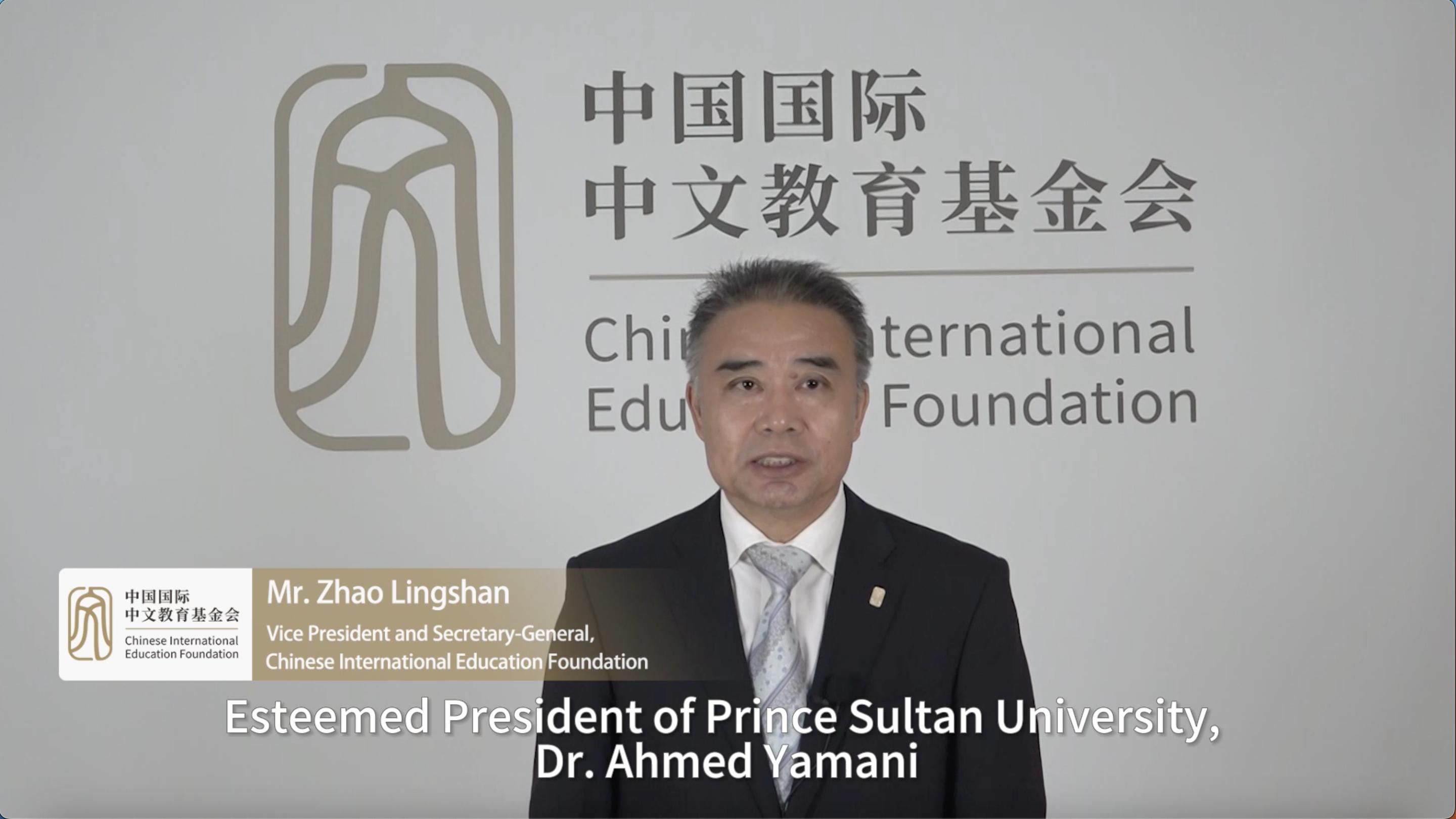 趙靈山通過視頻致辭代表中國國際中文教育基金會、理事長楊衛院士對蘇爾坦親王大學孔子學院的揭牌表示熱烈祝賀,希望在蘇爾坦親王大學和深圳大學的精誠合作下,孔子學院能夠服務民眾,努力辦出成效、辦出水平、辦出特色,成為當地民眾學習中文、了解中國的重要平臺,構建中沙民眾心與心溝通的友好橋梁。