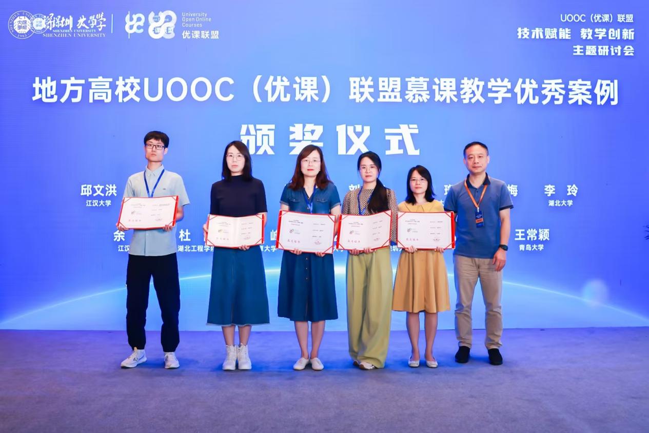 張曉紅和楊九民為獲得“優課聯盟慕課教學優秀案例”獎的30位獲獎教師頒獎。慕課教學優秀案例獲獎教師代表、深圳大學副教授羅莎老師講述了優課聯盟對教師教學上的支持。