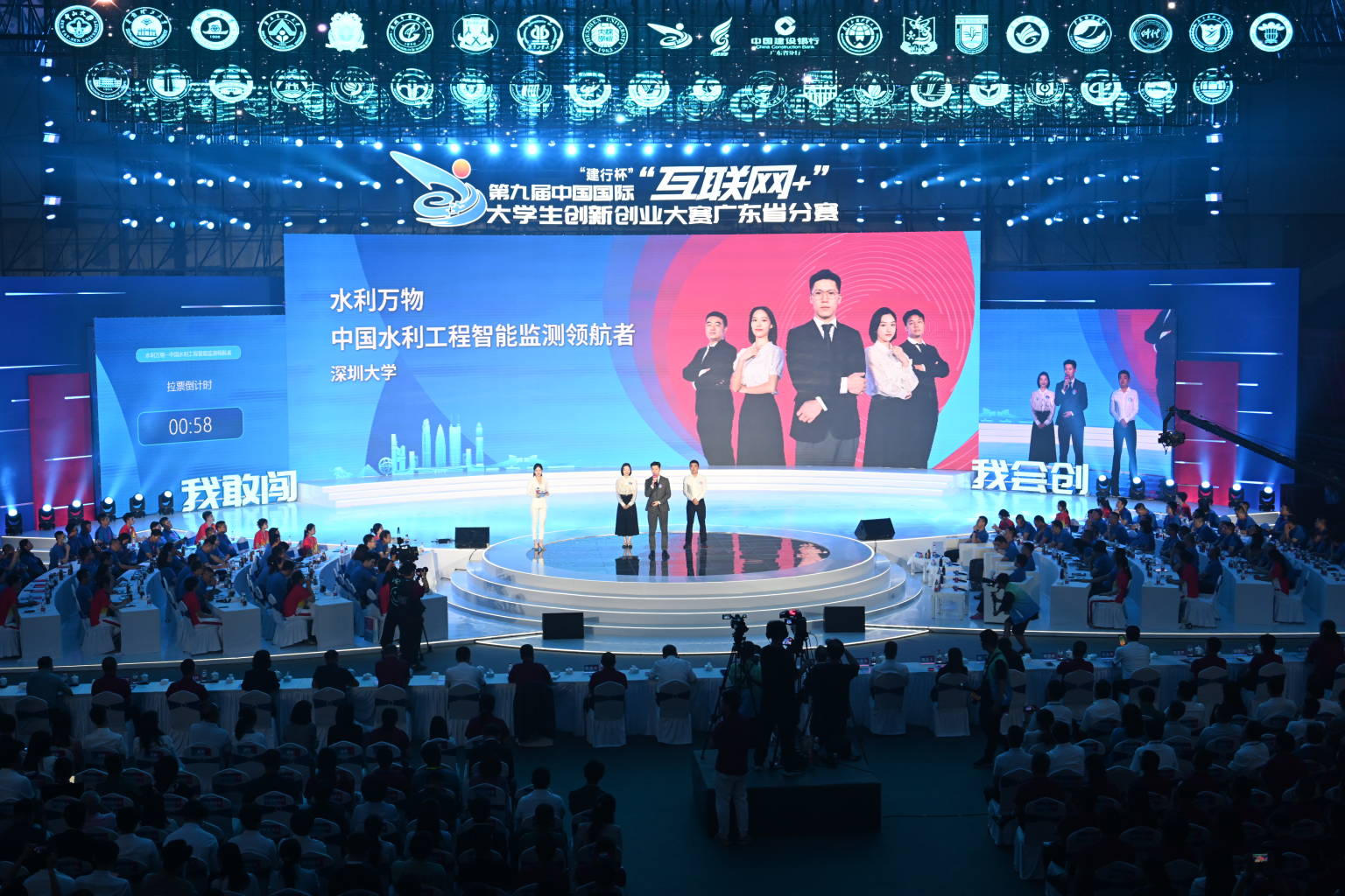 8月16日,“建行杯”第九屆中國國際“互聯網+”大學生創新創業大賽廣東省分賽(以下簡稱“互聯網+”廣東省分賽)冠軍爭奪賽暨閉幕式在深圳大學元平體育館隆重舉行。來自南方醫科大學、廣東工業大學、深圳大學、華南理工大學、深圳職業技術學院、暨南大學6所高校的6個項目狹路相逢,打響“互聯網+”廣東省分賽冠軍獎杯的爭霸戰。經過激烈比拼,最終深圳大學“水利萬物——中國水利工程智能監測領航者”項目以領先亞軍195分的絕對優勢獲得冠軍。