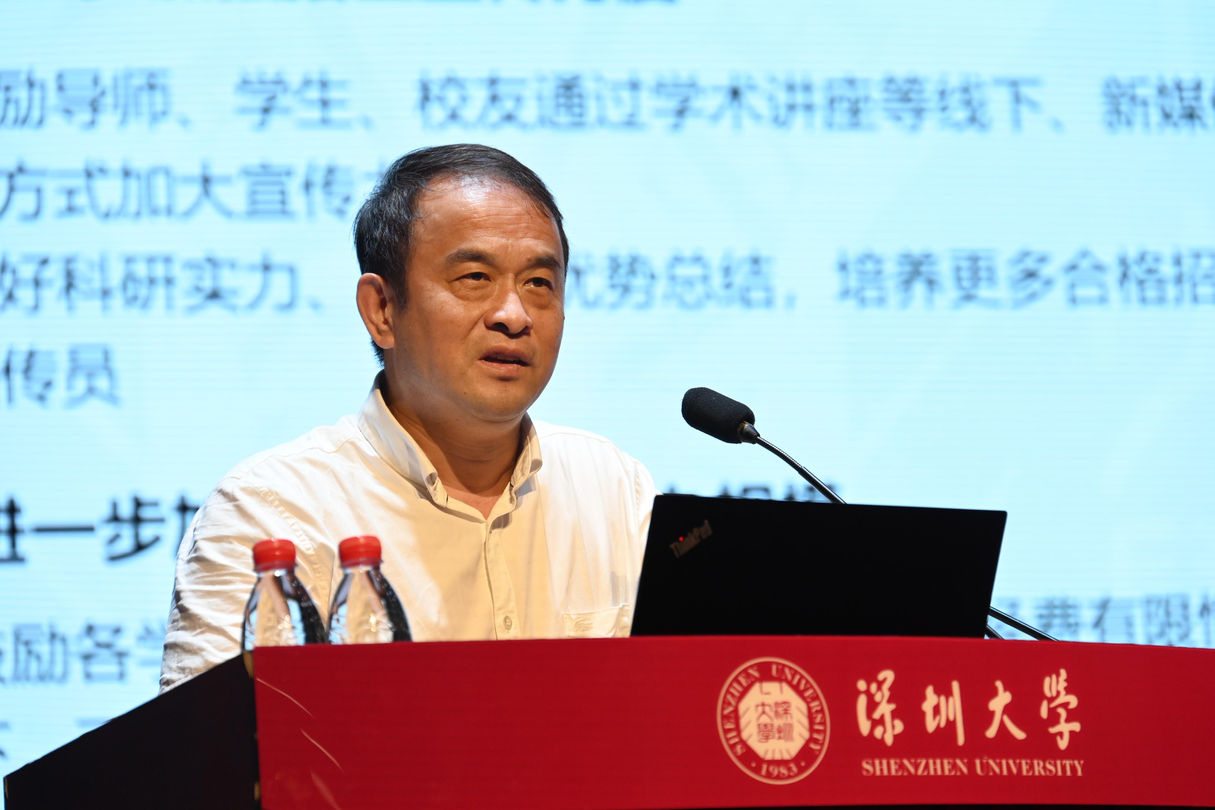 張曉紅就本科人才培養(yǎng)工作、招生工作、社科工作以及繼續(xù)教育工作作出部署,提出本科教育教學(xué)和人才培養(yǎng)的七大工作要點(diǎn)、進(jìn)一步提升深大文科“三力”的路徑以及新學(xué)期招生和繼續(xù)教育工作的工作思路。
