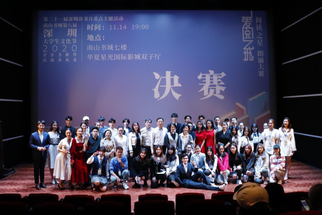 2020年11月14日,南山書城第八屆深圳大學生文化節“閱讀之星”朗誦大賽決賽在南山書城七樓電影院雙子廳舉行。